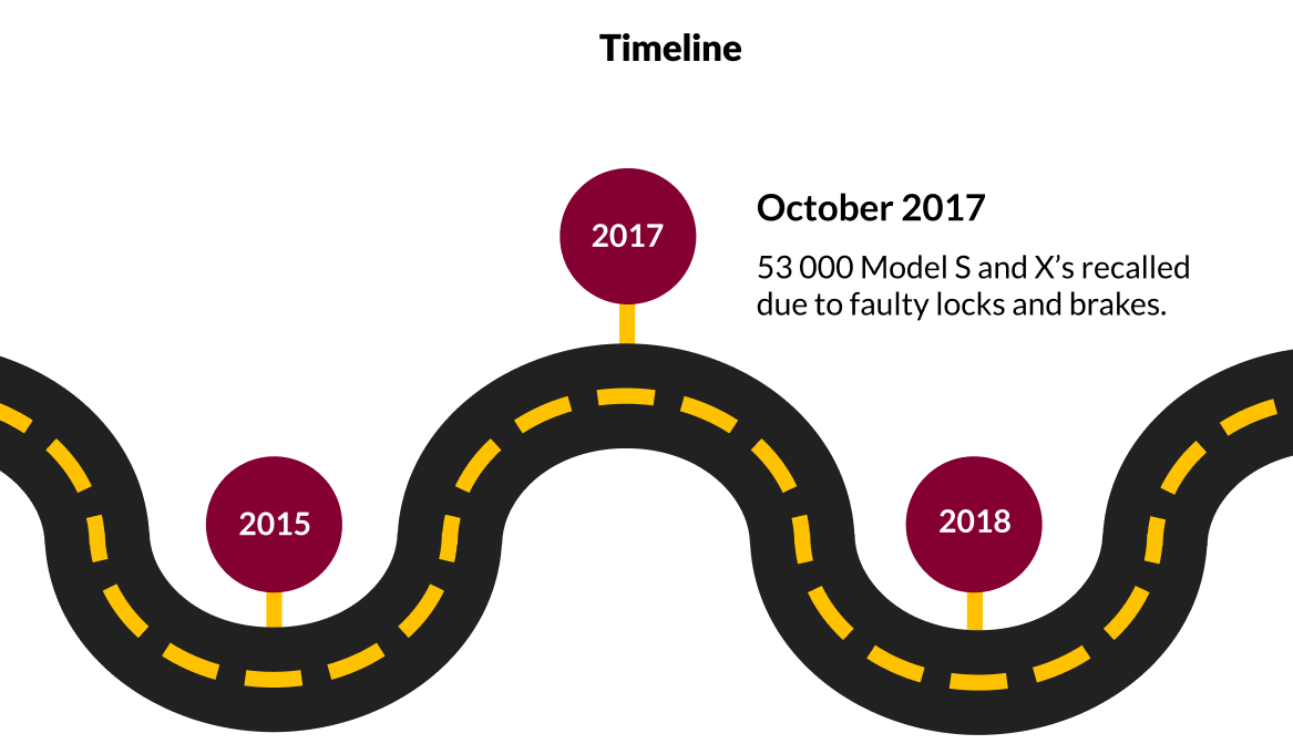 2. In 2017, Tesla recalled 53,000 Model X and Model S vehicles due to malfunctioning parking brakes and a faulty locking mechanism.