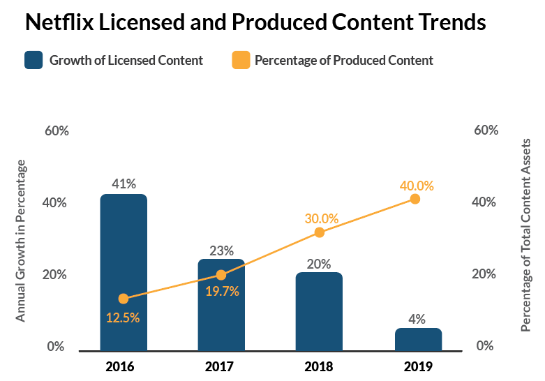 This content shift is demonstrated further in Netflix’s budget, as their rate of spending on licenced content has decreased steadily every year since 2016 when they reported an increase of 41%, while in 2019 they reported an increase of just 4% even though their market share had been steadily growing (Savitz, 2020).